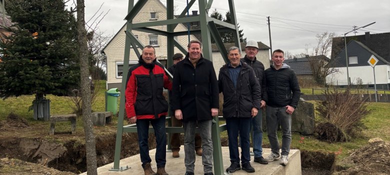 Ortsbürgermeister Albert Hüsch und Bürgermeister Joachim Brenner machten sich bei der Aufstellung selbst ein Bild vom neuen Turm und waren dabei, als die Glocke zum ersten Mal symbolisch per Hand geläutet wurde. Mit einem manuellen Anklingen der Glocke wurde deutlich, worum es hier geht: nicht um Technik, sondern um Tradition, die in die Zukunft geführt wird, so Bürgermeister Brenner. Ortsbürgermeister Albert Hüsch erklärte, dass rund um den Turm in den kommenden Monaten ein kleiner Dorfplatz entstehen soll. Ein Ort zum Verweilen, mitten im Ort, dort, wo der Klang der Glocke seit Generationen dazugehört. Und wenn sie bald wieder läutet, wird es sicher jemanden geben, der besonders genau hinhört: Kunigunde Löb. Für sie – und für viele andere – ist der vertraute Ton mehr als nur ein Signal. Er ist ein Stück gelebte Dorfgeschichte.