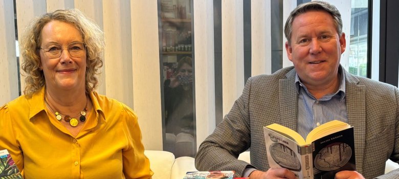 Foto: Links Dorothee Stöcker-Michael, Leiterin der Stadtbücherei Betzdorf, und rechts Bürgermeister Joachim Brenner beim Pressetermin im Dezember.